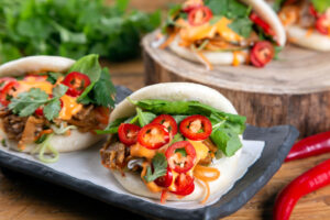 Perinteinen käristys Vöneristä muusin ja puolukoiden kera.