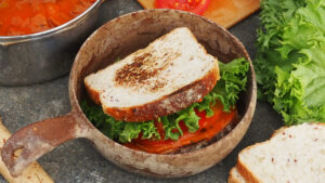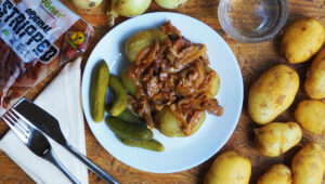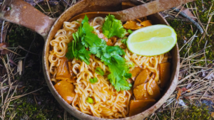 Vöner-lastuja miedossa kastikkeessa retkikeittimellä